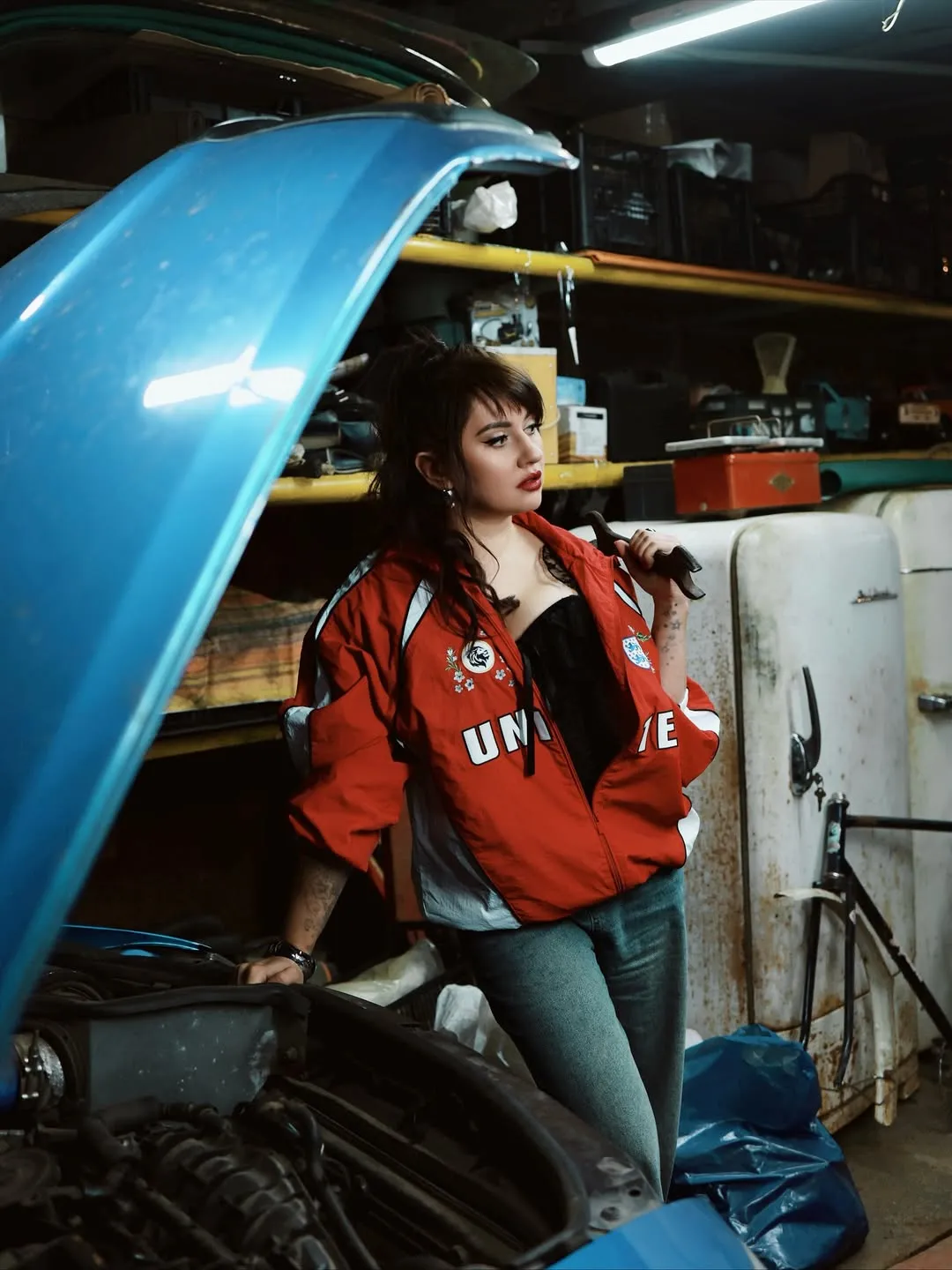 Твоя реакция, если бы ты увидел такого мастера в автосервисе? Хотя даже рядом с канистрами и инструментами Анна выглядит горячо!