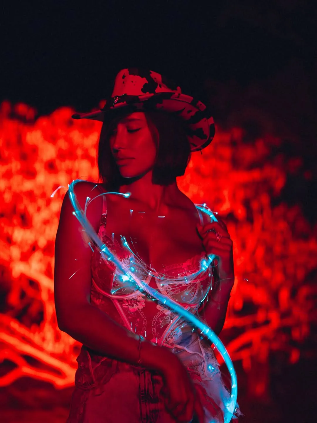 Новоиспечённым мамам тоже надо отдыхать. Поэтому Валя посетила неоновую вечеринку. Уверены, перед такой ковбойшей вряд ли мог кто-то устоять.