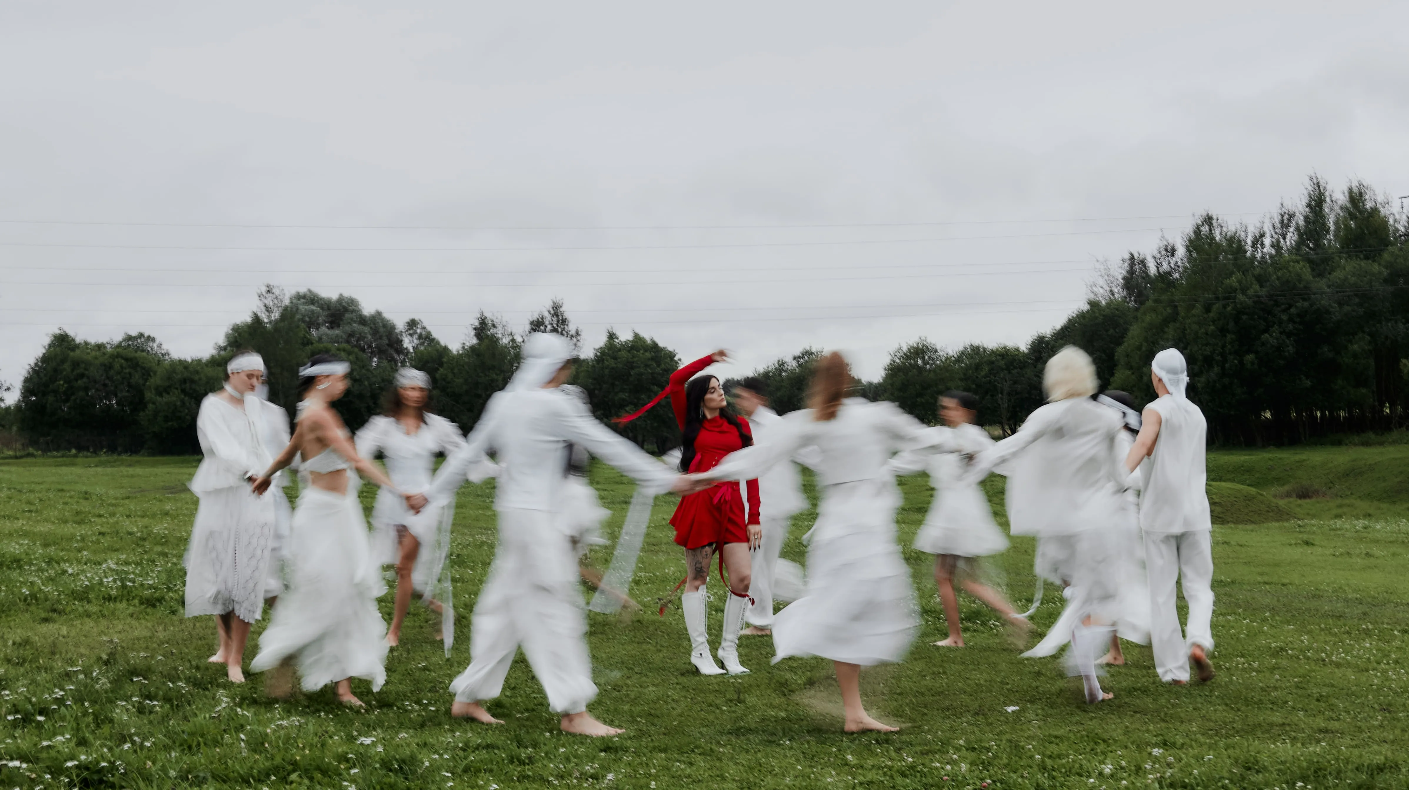 Визуал построен на ритуальных образах и минимализме: холодный свет, акцентные цвета, обнажённая телесность и воздух, зритель не отвлекается ни на сюжет, ни на декорации.