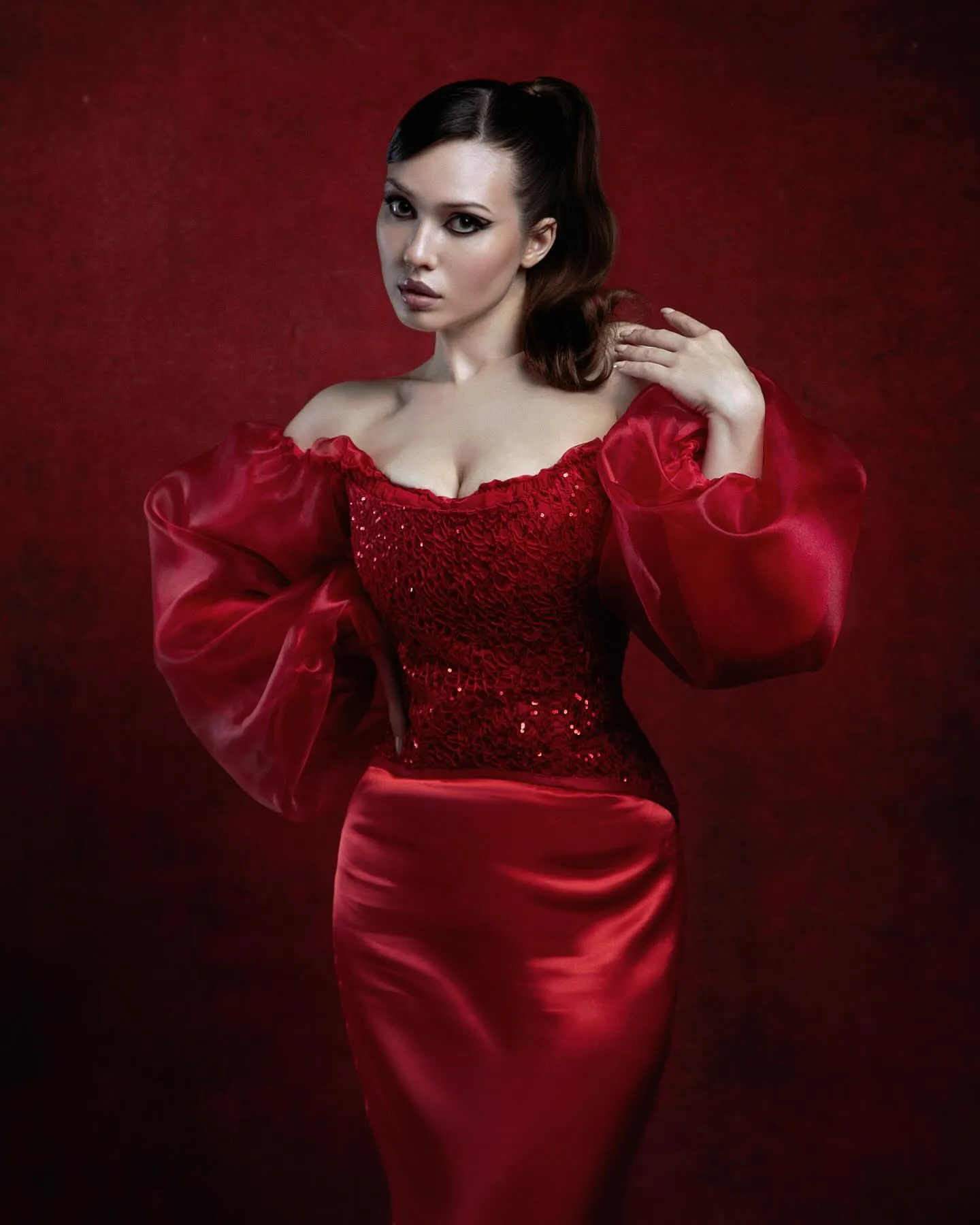 Мы знаем, куда ты посмотрел на этих снимках в первую очередь. Да, платье с открытыми плечами будет отлично смотреться на любой фигуре. Но на параметрах Арины оно выглядит особенно горячо.