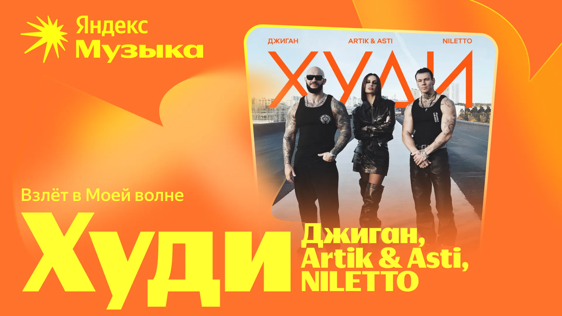 Хитовая коллаборация «Худи» от Artik & Asti, Джигана и NILETTO стала «Треком года», забрав 2025-й по числу прослушиваний. Эта песня о запутанных отношениях и клубных вечеринках несколько месяцев удерживала лидерство в Чарте Яндекс Музыки и взлетела в системе рекомендаций, благодаря чему получила ещё одну награду — «Взлет в Моей волне».